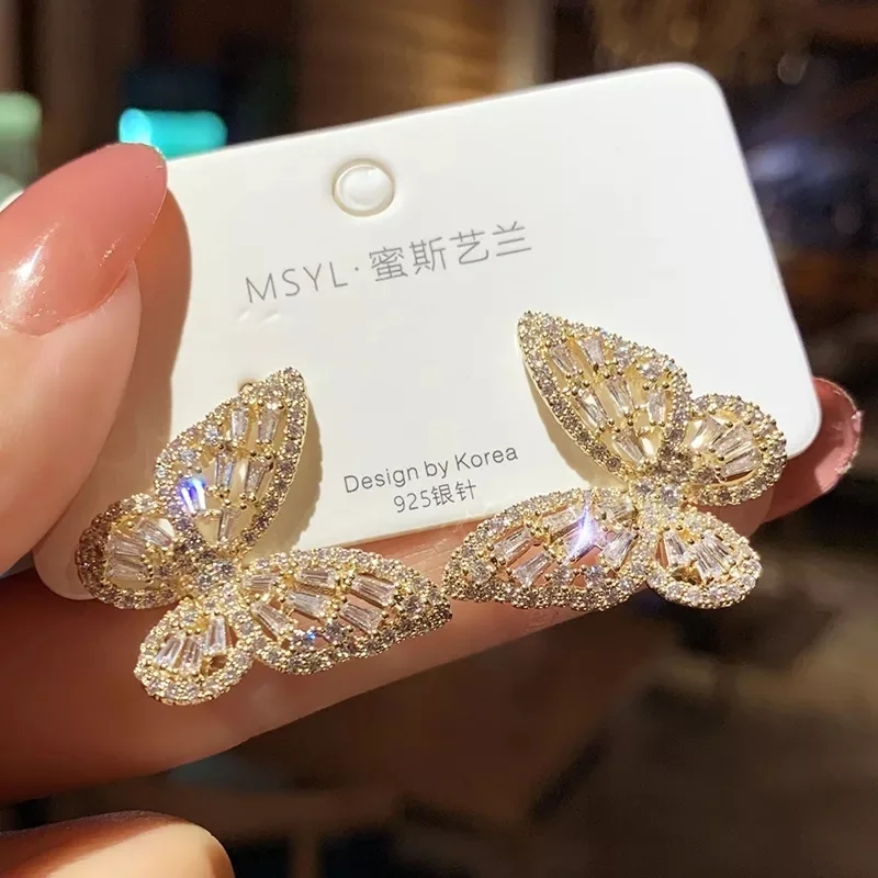 Golden Butterfly Rhinestone Earings