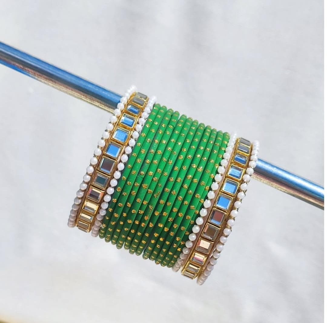 Be the first to review “Green Dotted Bangles Kundan Kara Set”