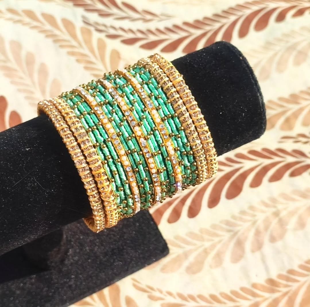 Dark Green Silk Thread Beaded Bangles Set