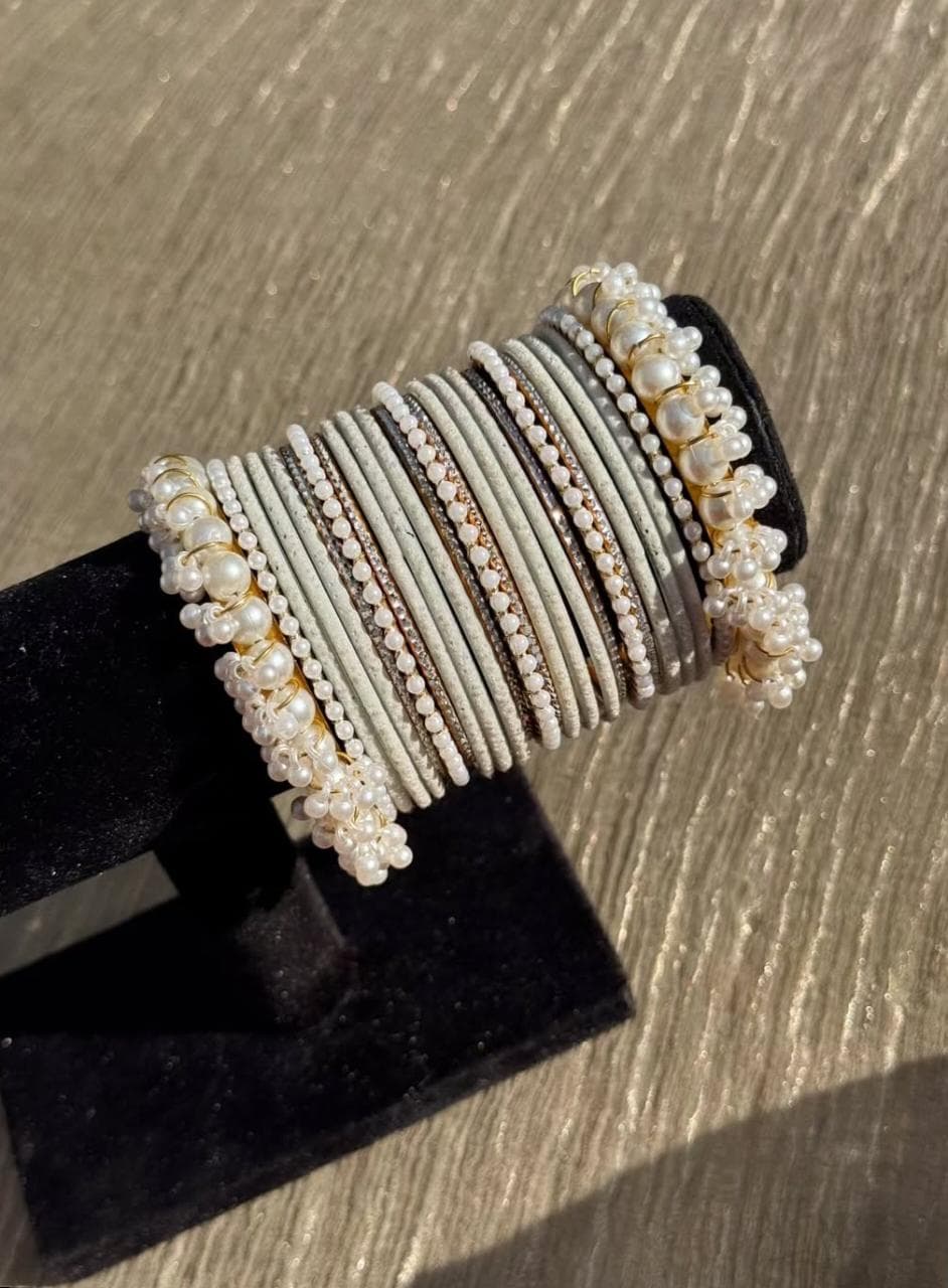 Be the first to review “White Velvet Bangles Pearl Gajra Set”