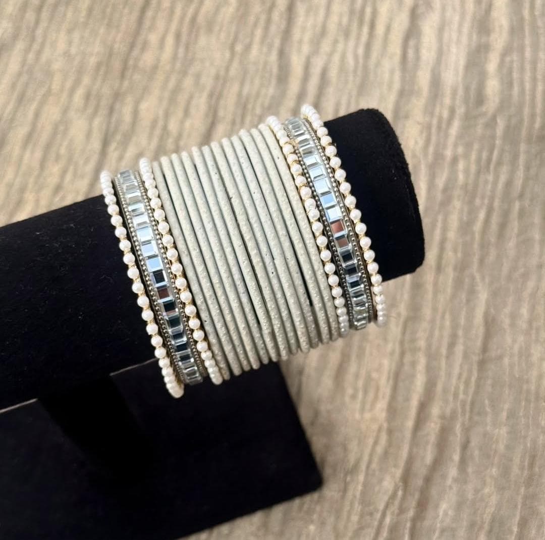 Be the first to review “White Velvet Silver Kundan Bangle Set”